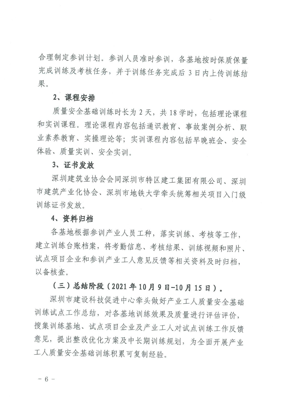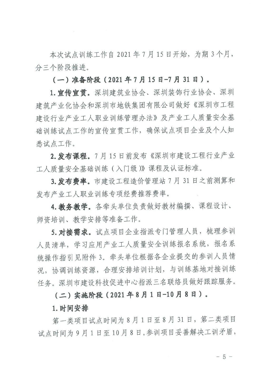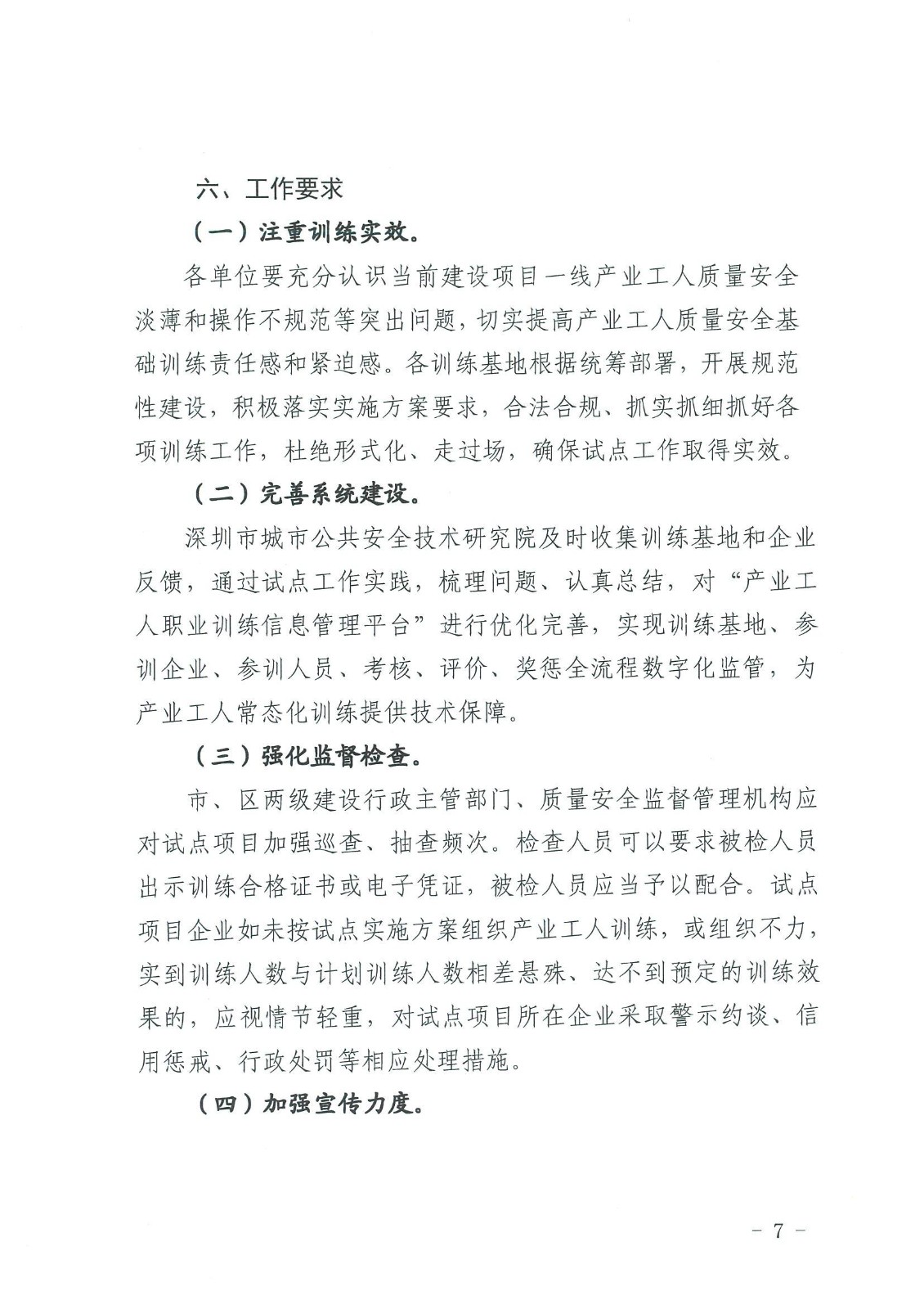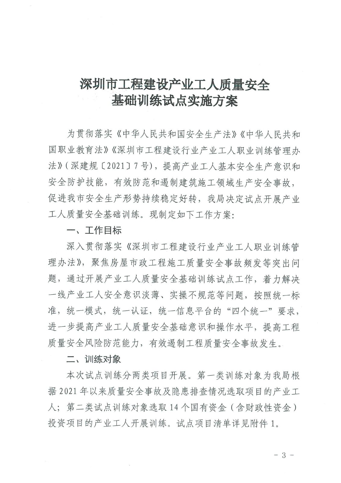深建设〔2021〕22号 深圳市住房和建设局关于印发《深圳市工程建设产业工人质量安全基础训练试点实施方案》的通知
